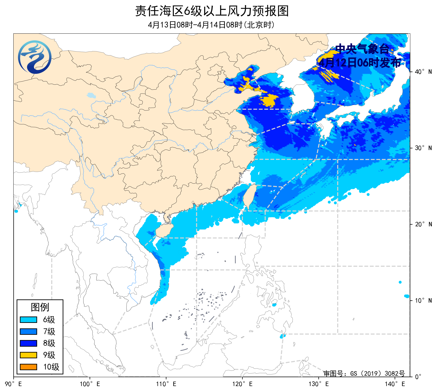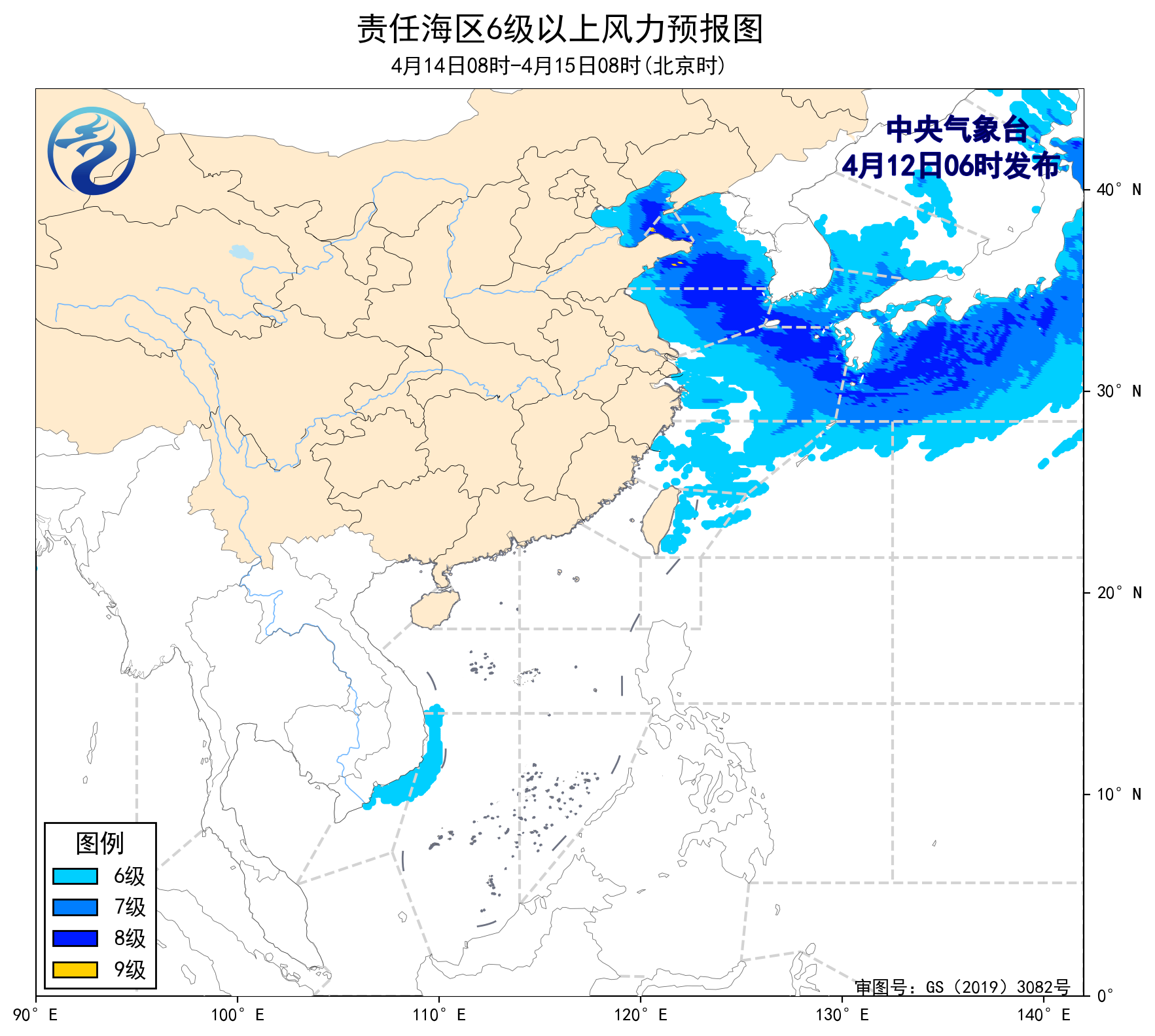 4月11日14時至12日02時,渤海出現了7~8級、陣風9級的偏北風,渤海海峽、黃海北部和中部海域、東海大部海域、北部灣出現了5~7級、陣風8級的偏南風。