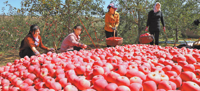 甘肅靜寧縣雷大鎮蘋果豐收。