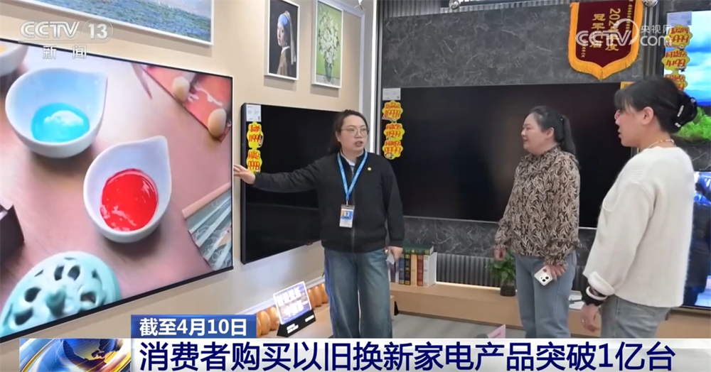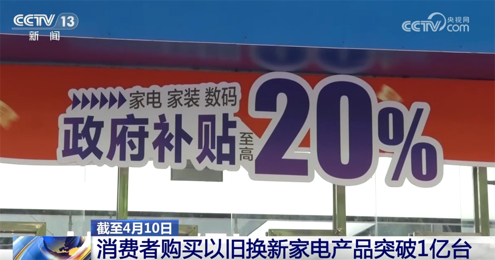 數據顯示,截至4月10日,消費者累計購買以舊換新家電產品達10035萬台。