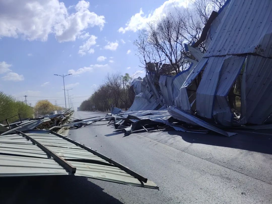 工業區廠房仍有一半屋頂處在危險狀態,當前風力8級,有再次被大風吹落至主路風險,交通部門已通知鄉鎮儘快拆除。同時,因路側彩鋼板與電線搭接且有觸電風險,房山公路分局與閻村鎮、區城管委、區供電部門會商研判,目前不具備開放交通條件。待其餘彩鋼板全部拆除清理完畢徹底消除隱患後,恢復交通通行。