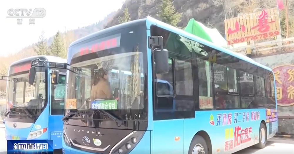 在青海省大通縣,一大早郵政工作人員將包裹搬到“客貨郵融合專線”公交車上清點數量,完成交接後,駕駛員常青偉載着貨物出發了。這些包裹被放在車尾專區,和乘客一起“坐”着公交車下鄉進村。