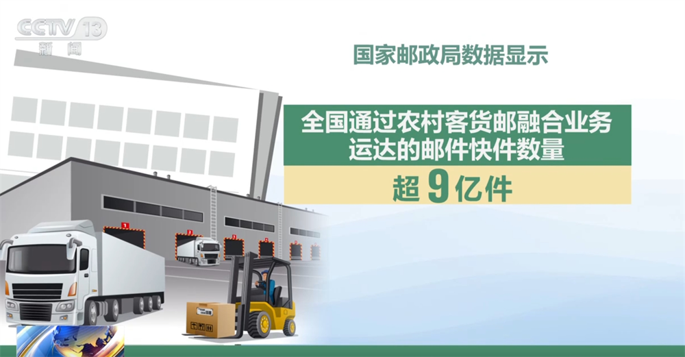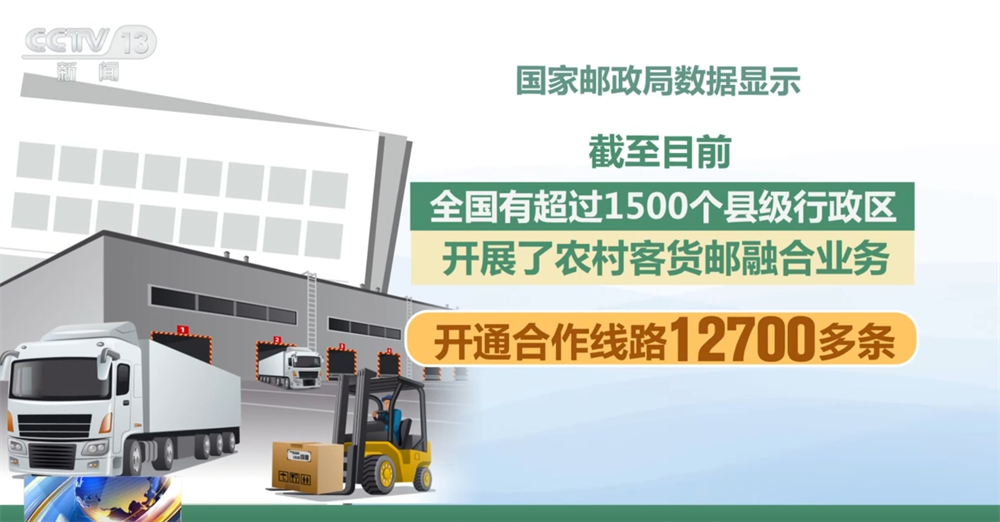 國家郵政局數據顯示,截至目前,全國有超過1500個縣級行政區開展了農村客貨郵融合業務,開通合作線路12700多條。全國通過農村客貨郵融合業務運達的郵件快件數量超9億件。