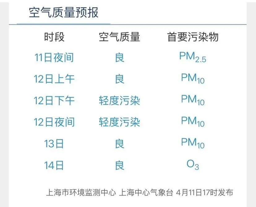 4月12日,“上海環境”微信公號發佈消息稱,受外來沙塵輸送影響,預計4月12日下午至13日上午,上海市將受到沙塵輸送過境影響,出現PM10中度及以上污染過程。