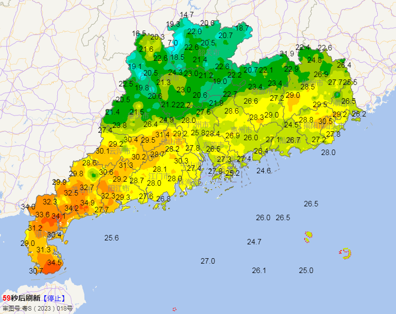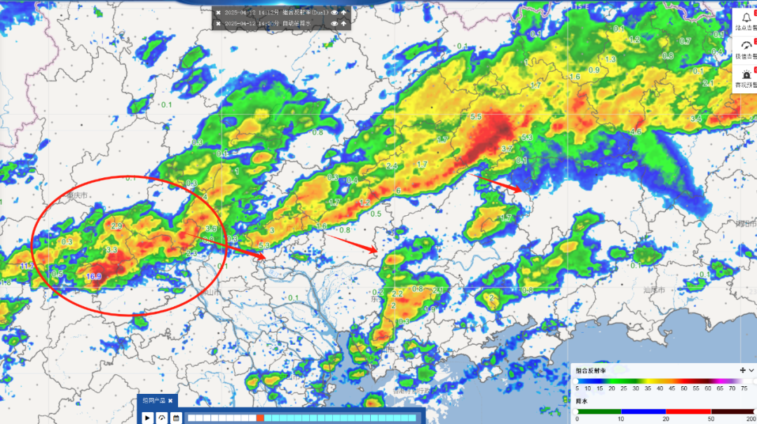 過去3小時雷雨雲團和強冷空氣前鋒繼續東移南壓,開始影響我省中北部的肇慶中部、佛山北部、廣州北部一帶,上述地區已出現最大8-9級陣風、1小時40毫米左右的短時強降水和6-8℃降温。