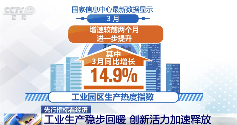 國家信息中心最新數據顯示,工業園區生產熱度指數今年一季度同比增長了11.3%,其中3月同比增長14.9%,增速較前兩個月進一步提升,這表明工業生產活動愈發活躍,發展勢頭良好。