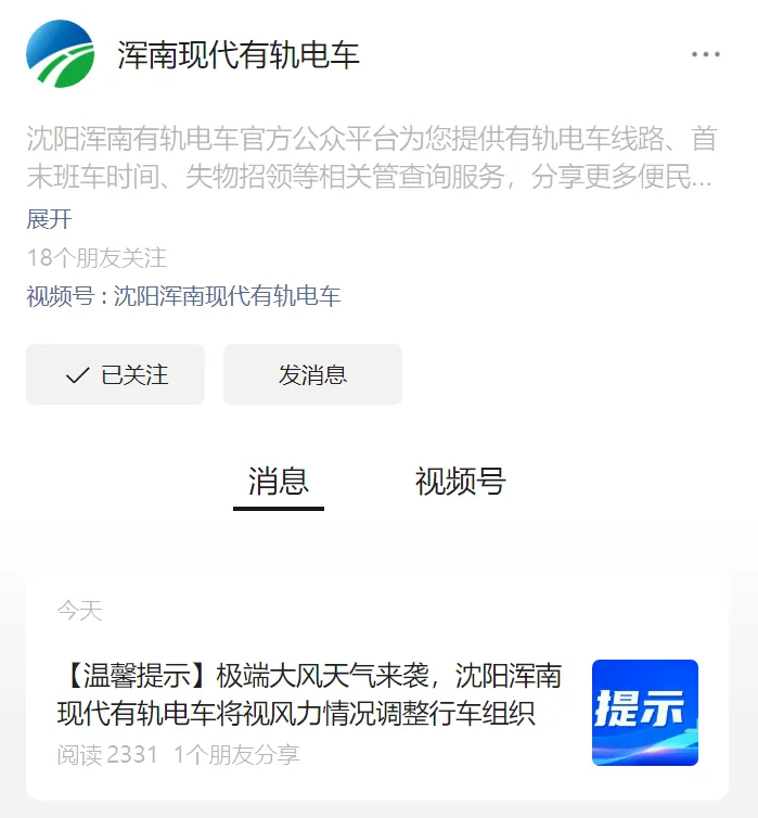 瀋陽渾南現代有軌電車將密切關注天氣變化,及時調整行車組織方案並做好現場客流引導,全力保障乘客出行安全。感謝您的理解與配合!