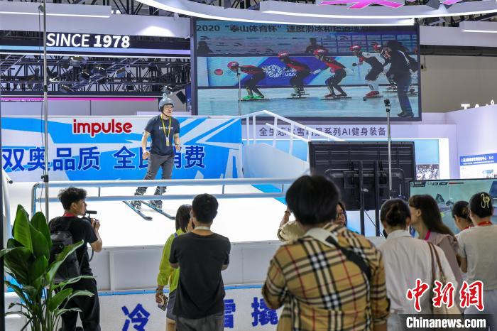 4月11日,第五屆中國國際消費品博覽會即將開展,企業推出具有AI功能的滑雪模擬機。中新社記者 駱雲飛 攝