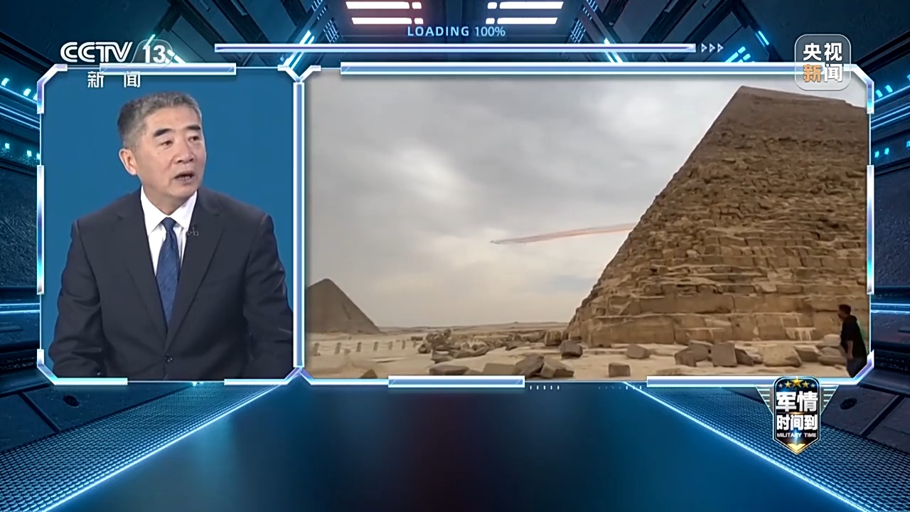 *軍事專家 杜文龍:*的確,在整個飛行過程中,編隊穩定,間距也保持得很穩定。因為金字塔是世界級的遺產。一般的表演隊肯定不讓飛。萬一出現問題,對整個場景包括遺產會產生比較大的影響。如果允許中國飛機就説明他相信中國,讓運-20飛説明更相信運-20。運-20再加上殲-10整個編隊飛行,大機羣在金字塔上空的飛行,那説明對於中國能力、中國製造有充分的信心。所以這次飛行它是一個標誌性的時刻,也是一個歷史性的時刻。
