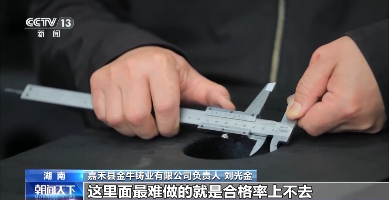 *湖南嘉禾縣金牛鑄業有限公司負責人 劉光金:*以前我們生產“小五金”的時候一年就3000來萬元,到了2023年的時候,這種低端產品市場逐漸飽和。那一年我們的營業額直接下降了一半,這個時候企業如果不換賽道的話,被淘汰那就是早晚的事情。