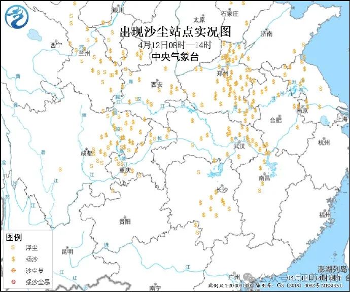 據@中央氣象台:14時,沙塵已經影響到江南地區。
