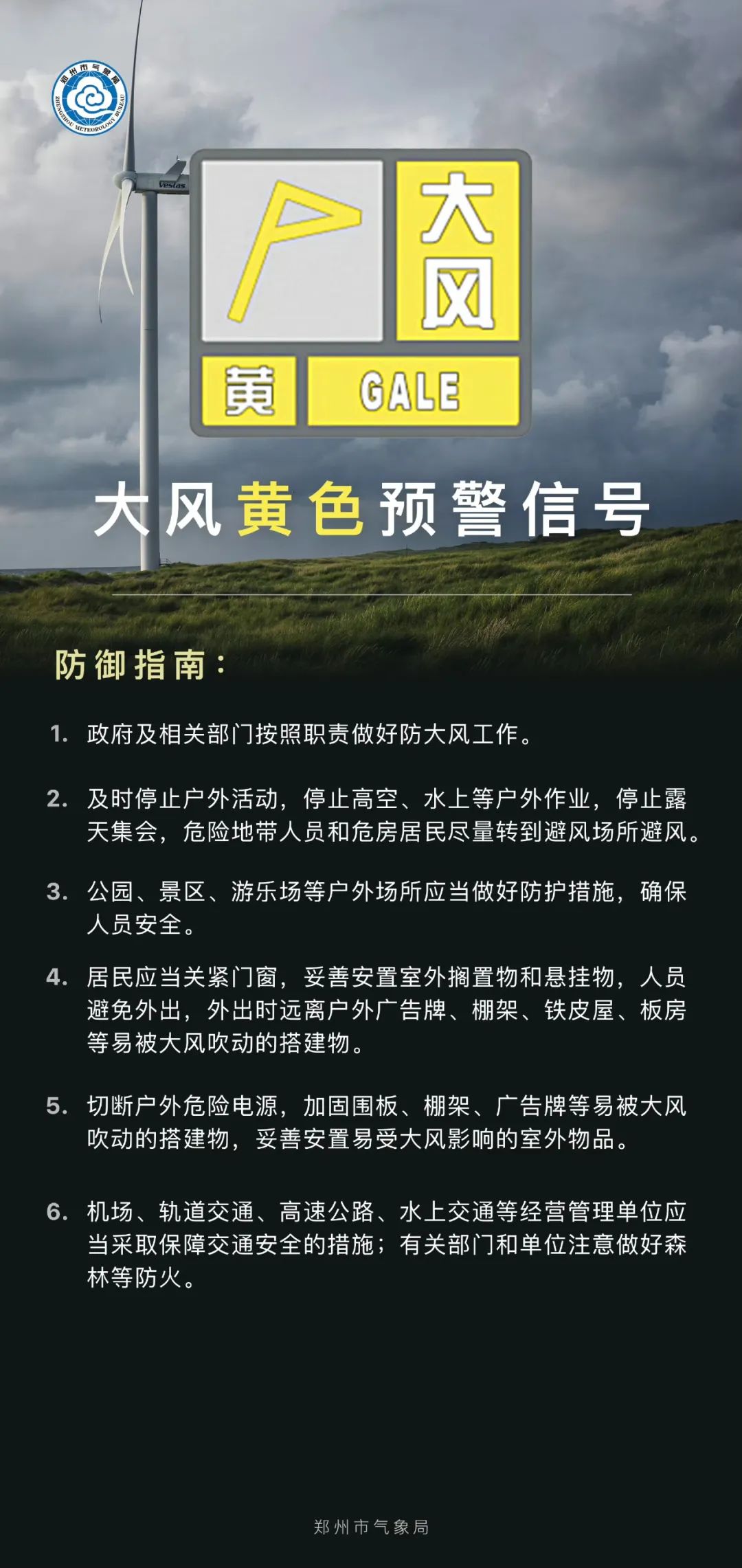 主要強風時段在11時至18時!鄭州市氣象台繼續發佈大風黃色預警信號