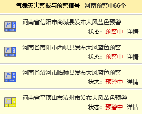 66個大風預警信號生效中!河南今日大風+沙塵持續