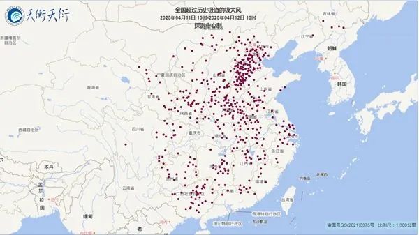 截至15時,全國493個國家觀測站打破4月同期極大風紀錄。
