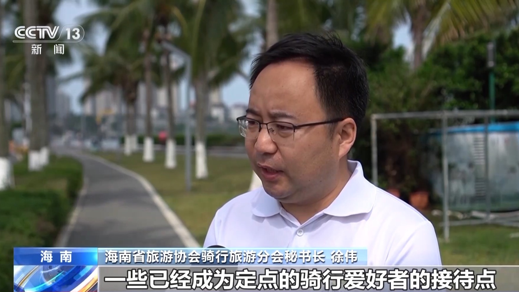 *海南省旅遊協會騎行旅遊分會秘書長 徐偉:*帶動了沿線的餐飲住宿收入,有的已成為定點的騎行愛好者接待點,也帶動了全島自行車產業鏈升級,包括全球一些知名品牌已經在海口開了銷售店,消博會也會帶動本地裝備消費熱。