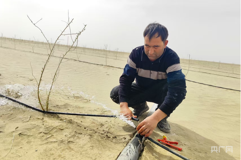 阿布杜熱合曼·麥麥提經營着一個汽車裝潢坐墊廠,起初對在沙漠裏種植持懷疑態度,試種10畝地看到收益後,在全家人的支持下,他毅然承包了380畝地。如今,他每天都幹勁十足地穿梭于田間,並憧憬着將桃子通過冷鏈銷往全國各省市。