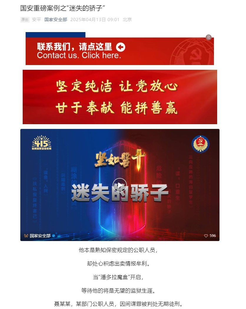官方披露:聶某某選拔處長未果,充滿怨氣,當起了間諜