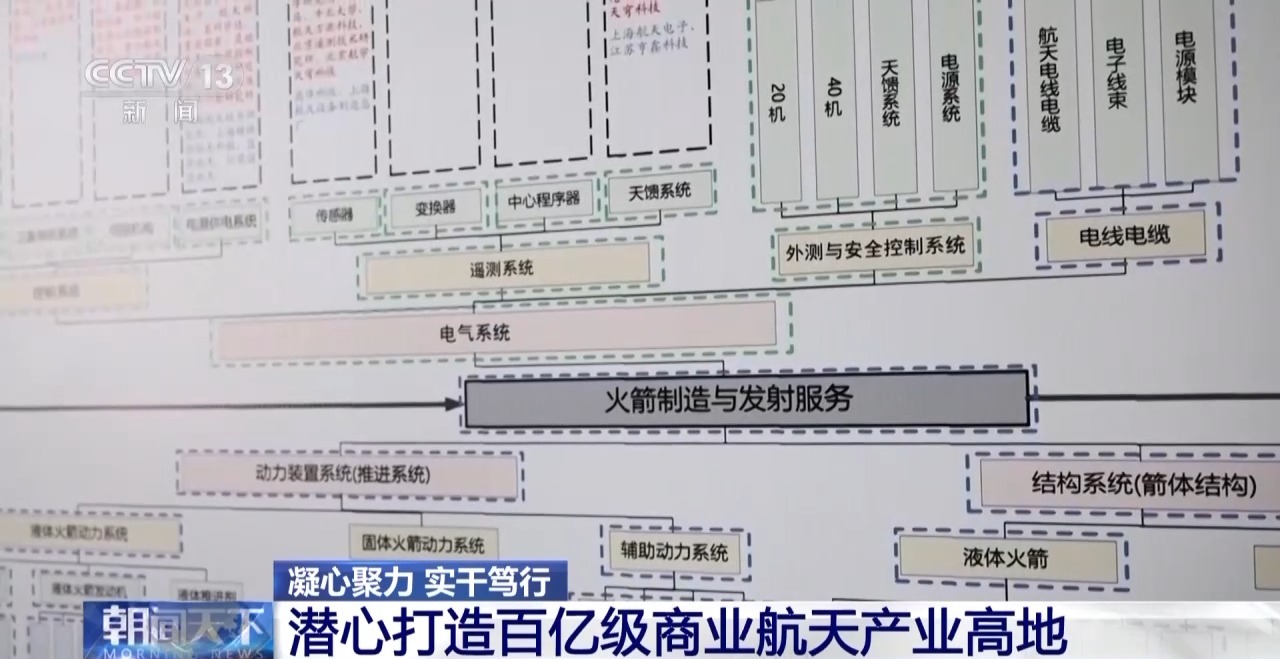 在安徽星河動力裝備科技有限公司的車間內,張榜着一份“池州市商業航天產業鏈全景圖”,這也是安徽省首份市級商業航天產業鏈圖譜。當地招商局的負責人告訴記者,他們開展鏈式招商,積極推動低軌通信衞星載荷的研發與製造。