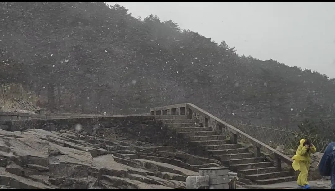 還有一位遊客在頂着風雨於下午1點多登頂時,見到了黃山飄雪,該遊客或是被美景吸引,並沒有提及風雨中爬山的驚險,只表示“沒想到見到了鵝毛大雪”。