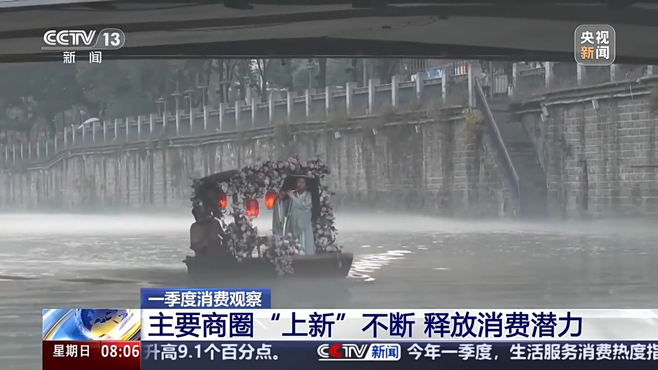 在四川成都,這個春天,遊客解鎖了新的“空中仙道”:泛舟湖上,升騰的雲霧與兩岸綠樹、城市地標相映成趣。水霧加激光技術讓“夜遊錦江”實現了全時段的體驗。在春熙路商圈已經聚集了各類首店600多家,品牌近2000個。接下來的兩個月,成都將迎來21場首發活動。同時,新技術首發也在不斷湧現。在這家商場裏,人工智能翻譯屏正在為境外消費者即時提供超14種語言的翻譯。