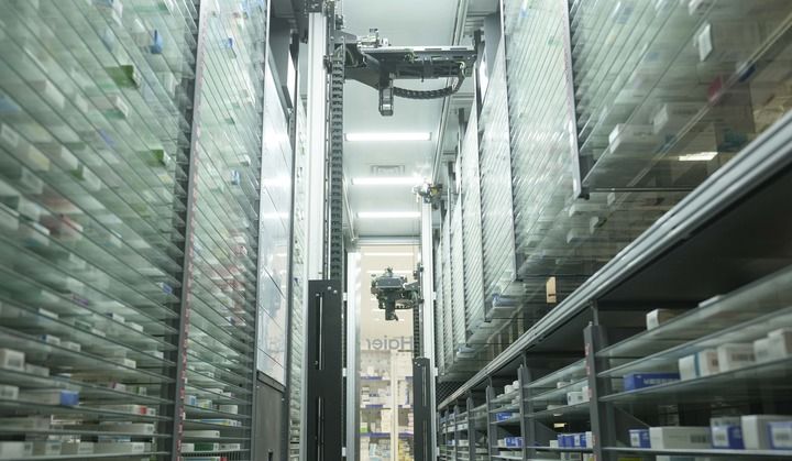 2025年3月5日拍攝的浙江大學醫學院附屬邵逸夫醫院新疆兵團阿拉爾醫院智能化藥房。新華社發(王志清 攝)