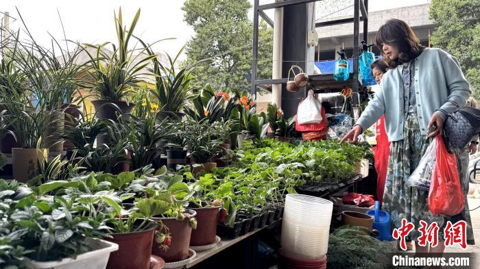 4月11日,顧客在西安朱雀花卉市場選購菜苗。楊英琦 攝
