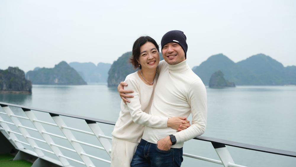 童光榮與莫雙雙在越南下龍灣遊玩。