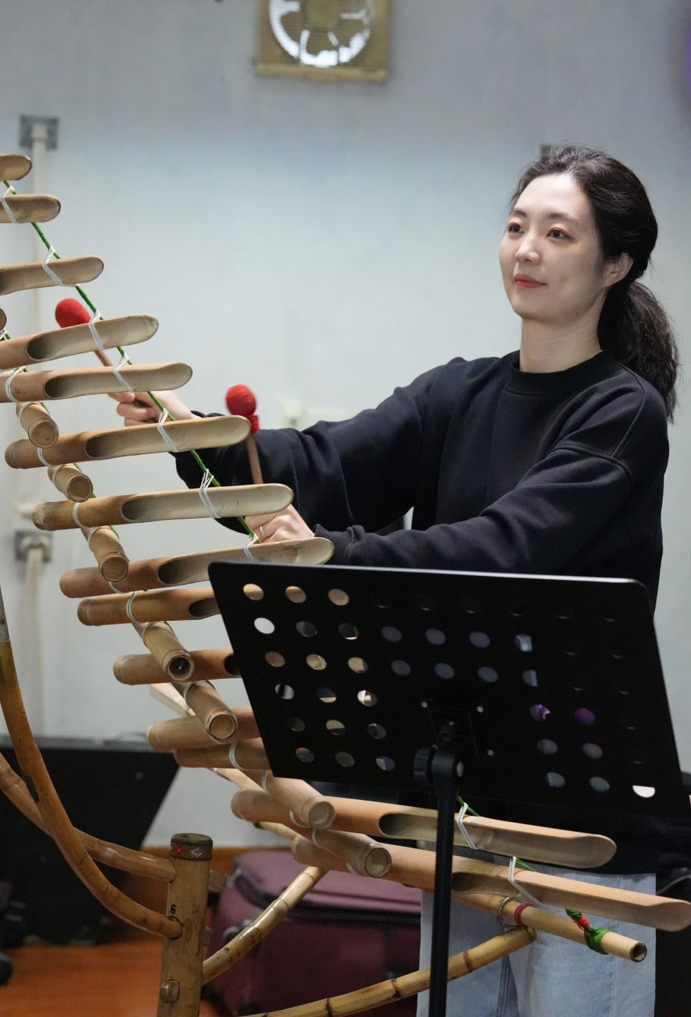 2024年11月5日,莫雙雙在雲南昆明舉行的共迎中國-越南建交75週年暨“中越人文交流年”中越文化及旅遊交流活動上演奏竹排琴。