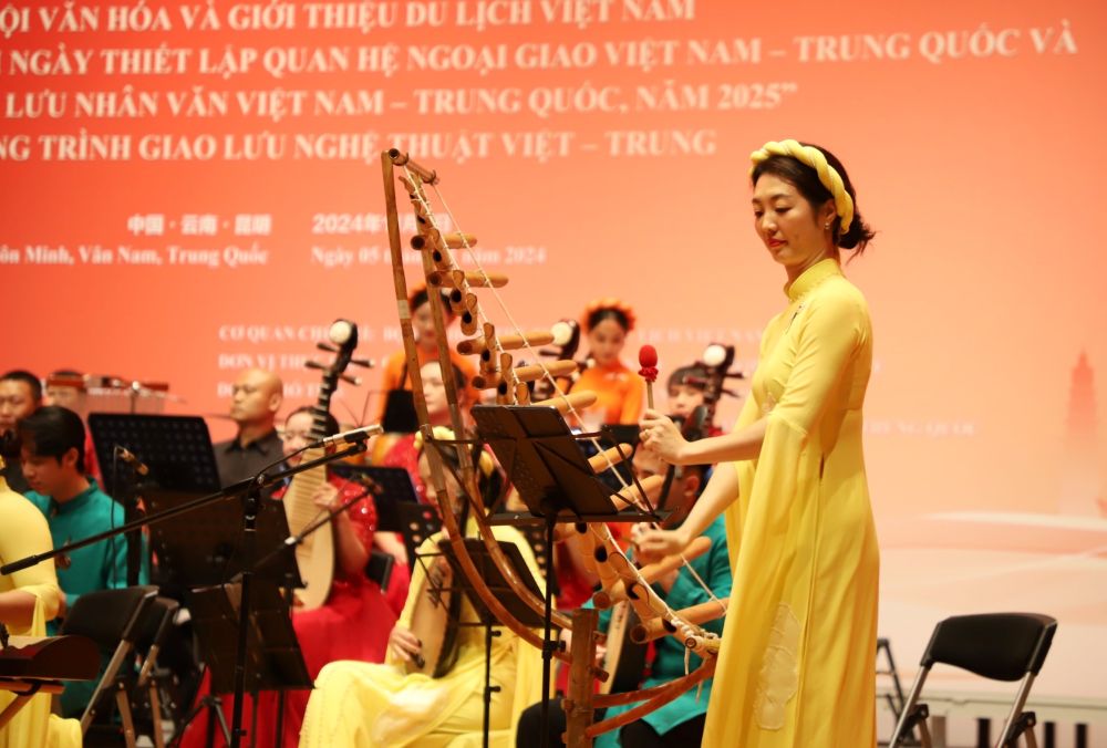 2024年11月5日,“新活力”民族樂團在雲南昆明舉行的共迎中國-越南建交75週年暨“中越人文交流年”中越文化及旅遊交流活動上演出。