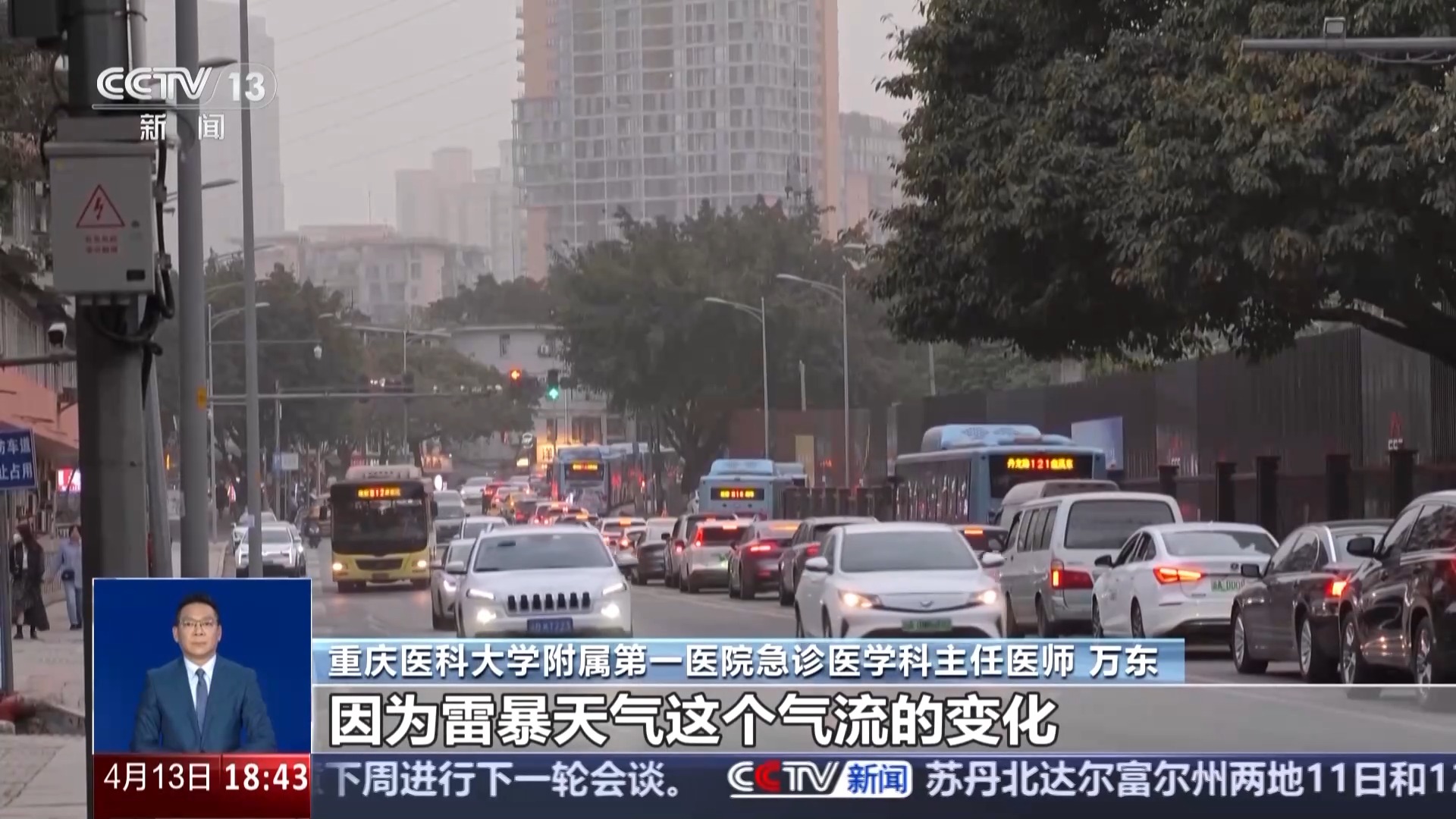 *重慶醫科大學附屬第一醫院急診醫學科主任醫師 萬東:*雷暴天氣這個氣流的變化,它將那個地面的大量的花粉、菌絲孢子衝向空中,然後通過雨水浸泡就迸發出來一些小的顆粒,小的顆粒就直接進入氣道,然後刺激到我們的氣道,咳嗽、呼吸困難就表現出來。