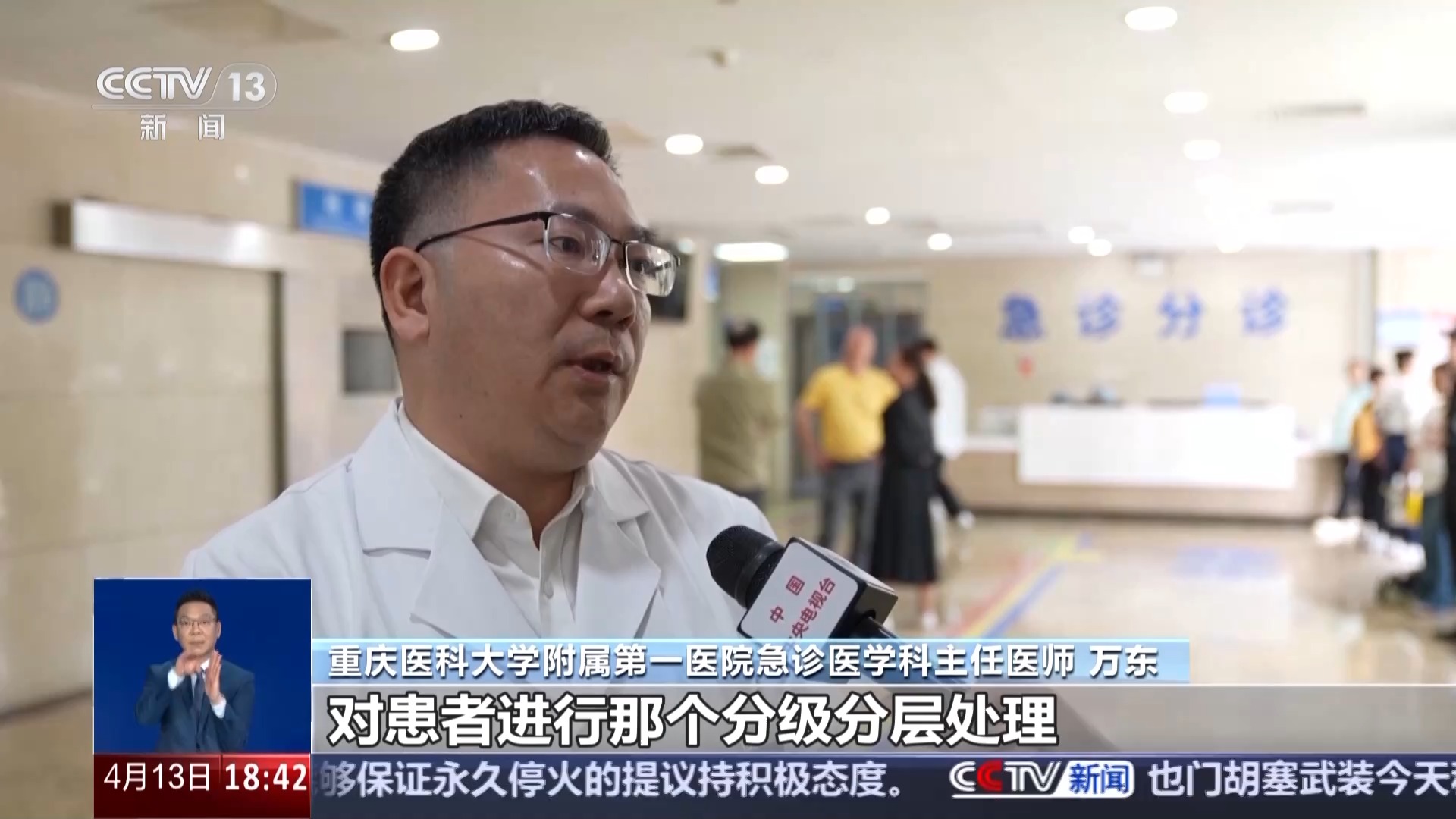 *重慶醫科大學附屬第一醫院急診醫學科主任醫師 萬東:*短短的在一個小時之內就收到100多名咳嗽、氣緊、呼吸困難的患者。結合當前的這個情況,我們考慮到這個是雷暴哮喘引發了,我們馬上就啓動了我們的應急預案。然後我們的急診專家、呼吸科的專家共同就趕到現場來,對患者進行分級分層處理。