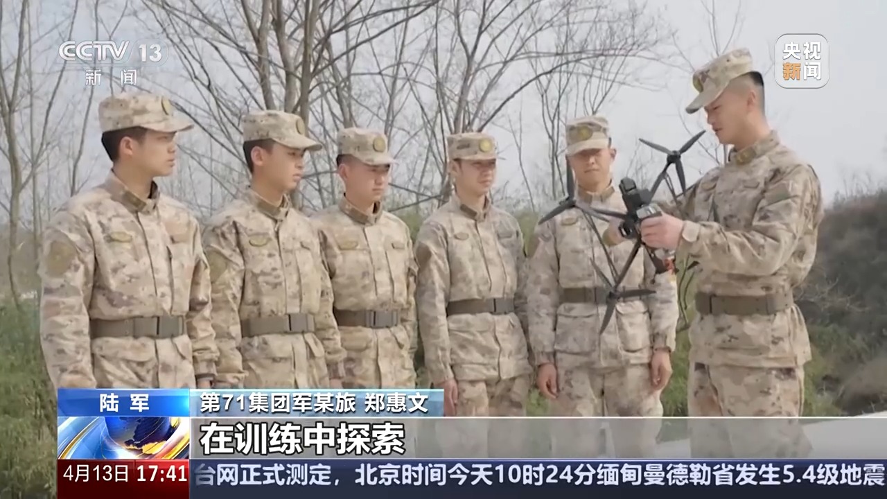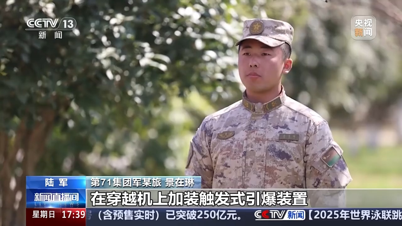 *第71集團軍某旅 景在琳:*我們充分借鑑現代戰爭中無人機作戰樣式,在穿越機上加裝觸發式引爆裝置,做了大量實驗,最終實現飛機接觸敵人的瞬間引爆雷管,達到精準殺傷的效果。