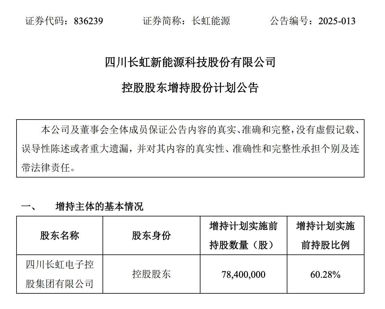 【環球網財經綜合報道】日前,北交所多家公司披露股東增持或回購計劃。其中,長虹能源發佈控股股東增持股份計劃公告。公告顯示,基於對公司未來發展前景的看好以及對長期投資價值的認可,控股股東四川長虹電子控股集團有限公司(簡稱“長虹集團”)計劃使用自有資金或自籌資金,增持金額不超過1億元。