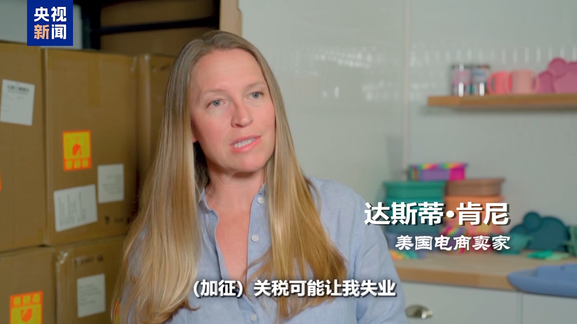 *美國電商賣家 達斯蒂·肯尼:*我們這個倉庫裏有成千上萬件產品,要給所有這些產品都加徵關税的話,還得儘量自己承擔這筆費用,以免給顧客漲價。這可就是一筆天文數字了。這可是我的生計啊,我們家就靠這個吃飯,(加徵)關税可能讓我失業。