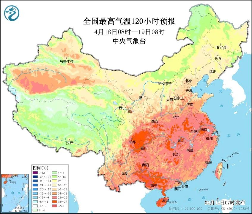 14日至18日安徽省氣温逐漸回升,18日全省大部分地區最高氣温可達30℃左右。