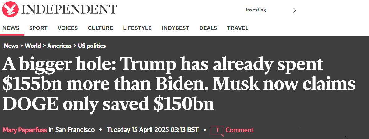 英國《獨立報》:特朗普政府支出比拜登多出1550億美元