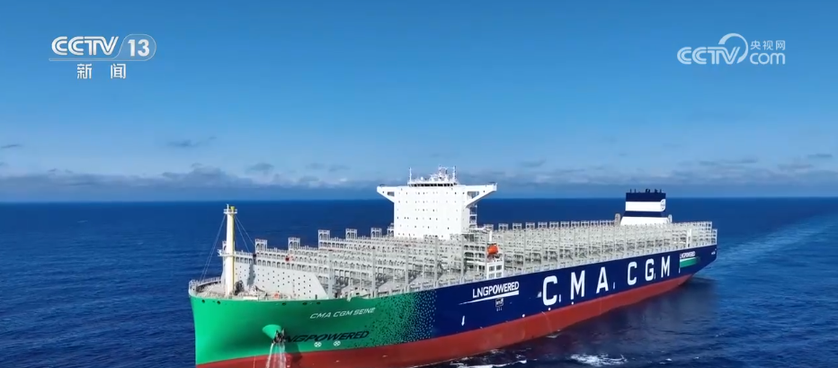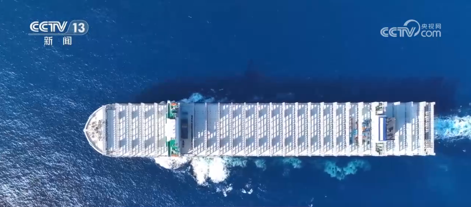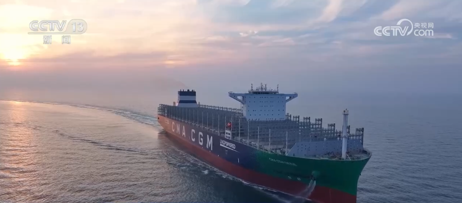 15日交付的全球最大雙燃料動力集裝箱船一次可承載22萬噸貨物,24000個集裝箱堆疊高度相當於25層樓,被稱為海上“超級帶貨王”。同時,這型船還採用了綠色燃料——液化天然氣作為動力,可為船舶提供單個航次近2萬海里的超遠續航。據介紹,這條船的特點是以液化天然氣作為動力來源,更清潔、更環保,而且裝箱量是全世界最大級別,大大提高了海運效率和經濟性。專家告訴記者,中國在集裝箱船建造領域接連刷新紀錄——從21000箱到23000箱,再到今天交付的24000箱,船越造越大的同時,建造週期也越來越短,這是中國造船能力的體現。