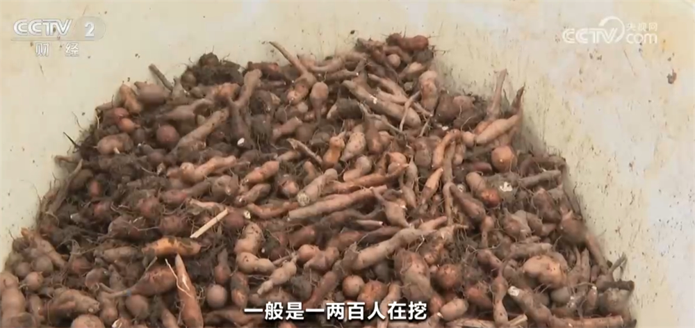 在海拔2866米的青海門源回族自治縣,遠處是連綿起伏的祁連山脈,在現場,上百位農民朋友正在地裏採挖蕨麻。蕨麻像珍珠項鍊一樣成串生長,顏色呈淡褐色,形狀就像是一個迷你的紅薯,每顆長度2—3釐米。別看這蕨麻只有拇指大小,裏面的營養成分可不容小覷,它也是青藏高原中極富特色和營養的珍稀資源植物。