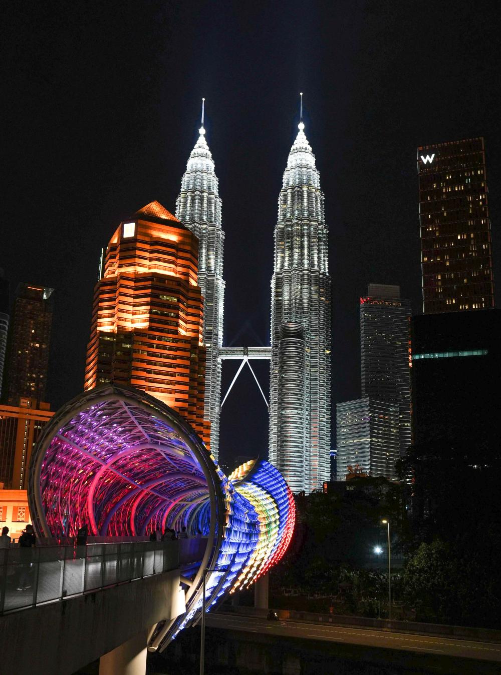 ↑這是2025年4月10日在馬來西亞吉隆坡拍攝的馬來西亞國家石油公司雙塔。新華社記者 賴向東 攝