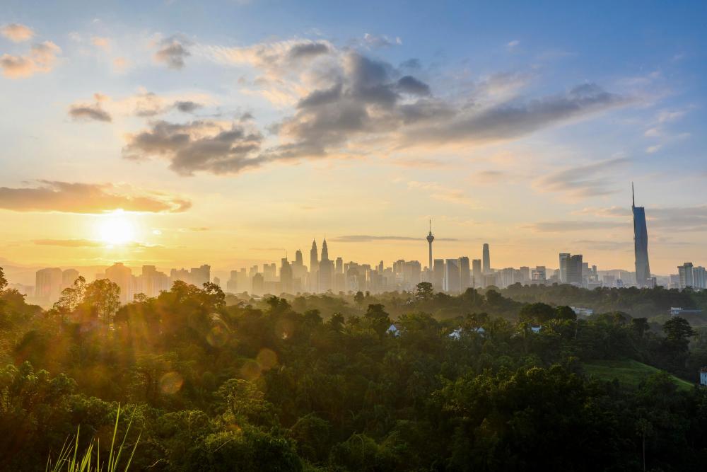↑這是2024年8月18日清晨在馬來西亞吉隆坡拍攝的城市天際線。新華社發(張紋綜攝)