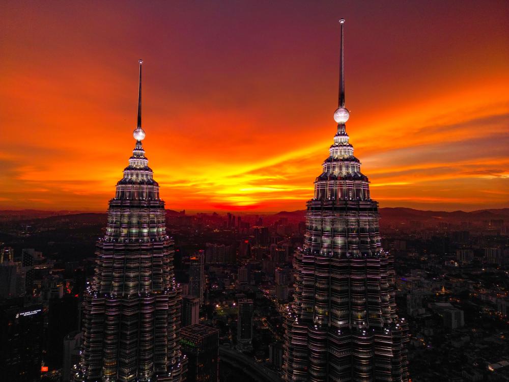 ↑這是2024年6月8日在馬來西亞吉隆坡拍攝的馬來西亞國家石油公司雙塔(無人機拍攝)。新華社記者 程一恆 攝