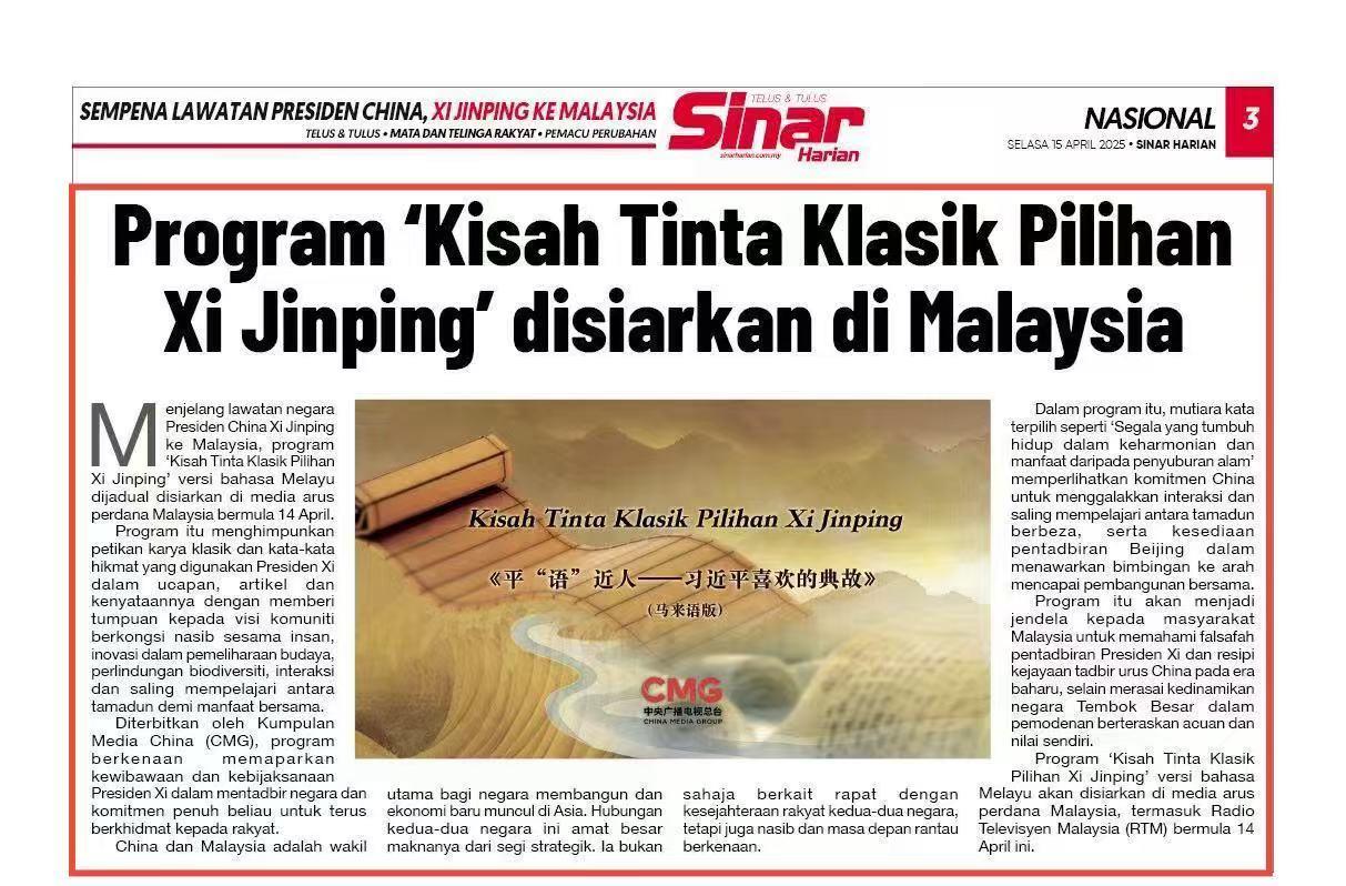 《平“語”近人——習近平喜歡的典故》(馬來語版)將在馬來西亞主流媒體落地播出