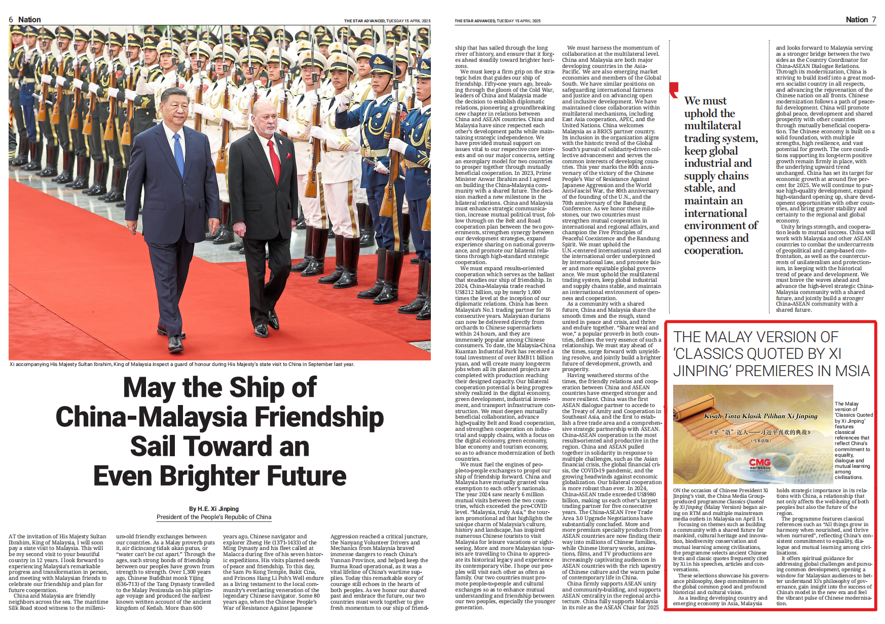 4月15日,馬來西亞中文、英文、馬來文主流媒體《星洲日報》《星報》《陽光日報》分別刊發節目在馬來西亞落播的消息。文章指出,《平“語”近人——習近平喜歡的典故》(馬來語版)特別選取了“萬物各得其和以生,各得其養以成”等典故,生動闡釋中國堅持不同文明之間平等交流、互學互鑑,願意為人類破解時代難題、實現共同發展提供強大的精神指引,有助於馬來西亞民眾更好讀懂新時代中國之治的成功密碼,感知中國式現代化蓬勃發展的強勁脈動。