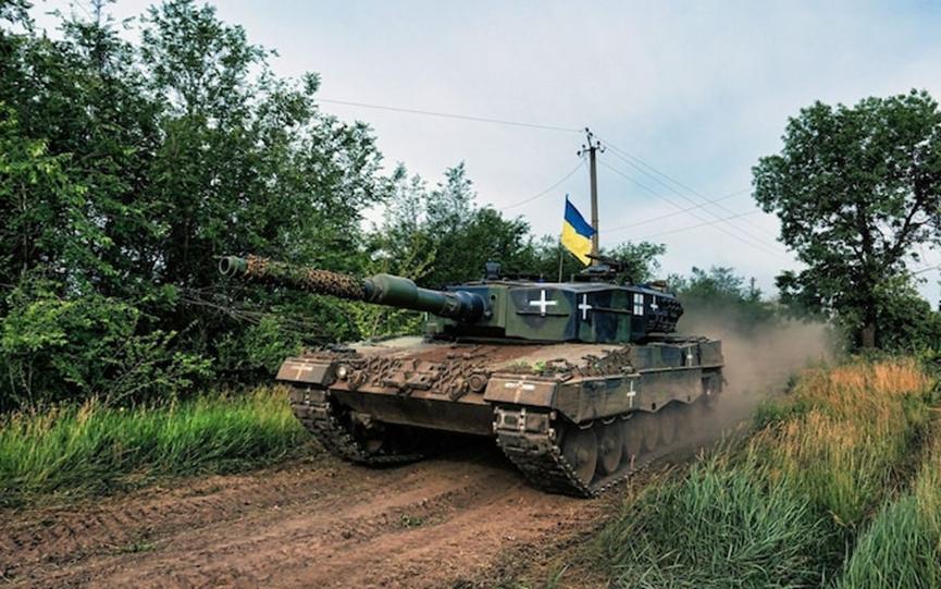 在烏克蘭扎波羅熱地區的一輛“豹”-2坦克 圖源:外媒