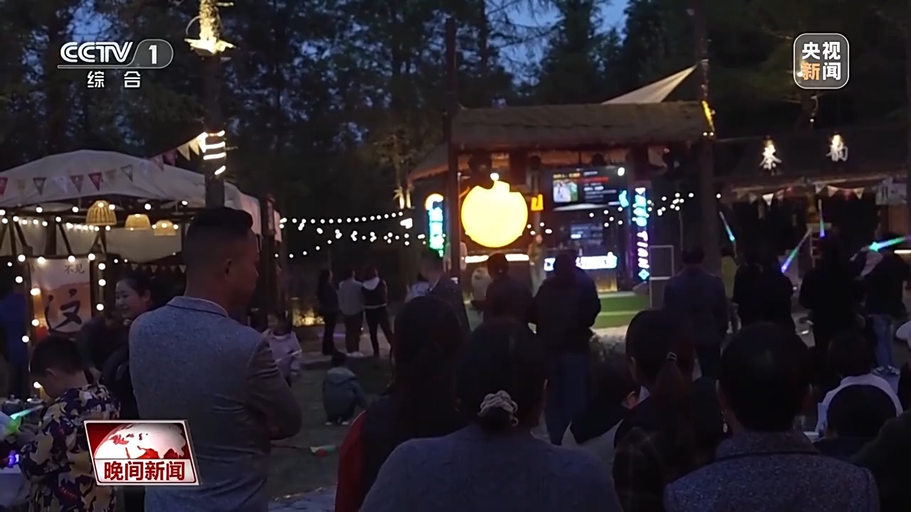 “森林餐飲+沉浸演藝”,露營新場景休閒新體驗。在湖北恩施,海拔1300米的建始縣山谷深處,露營基地通過創新場景,打造森林火鍋,併為遊客準備豐富多彩的歌舞文化表演。這種“餐飲+娛樂+文化”的融合業態,讓夜晚的森林變身大型露天派對現場,吸引眾多遊客前來體驗,感受新消費場景下的旅遊新魅力。