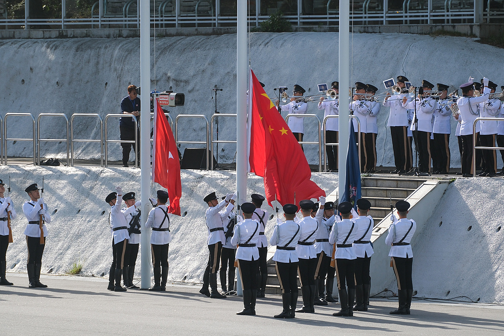國安教育日開幕典禮開始時,警察銀樂隊與聖保羅男女中學合唱團獻唱《我的祖國》以及《我們的家》聯曲。