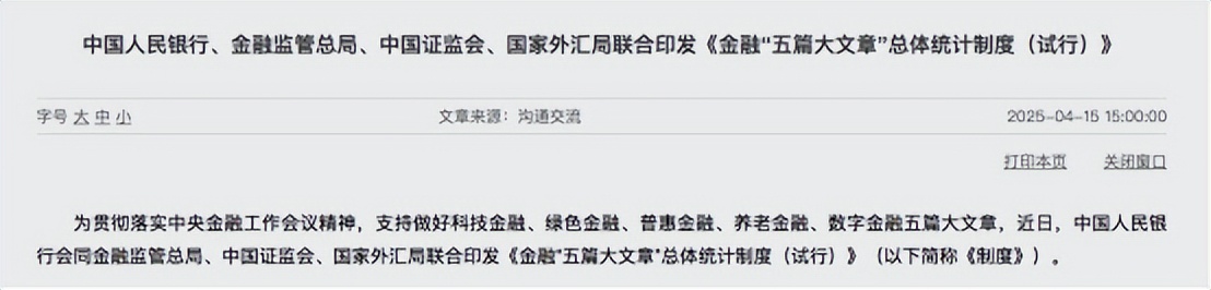 四部門聯合印發金融“五篇大文章”總體統計制度