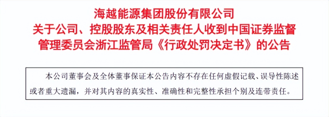 根據當事人違法行為的事實、性質、情節與社會危害程度,浙江證監局決定對*ST海越責令改正,給予警告,並處以600萬元罰款;對高鑫金控處以300萬元罰款;對時任公司董事長、財務總監,高鑫金控董事長、總經理王彬給予警告,並處以250萬元罰款;對時任公司副董事長、總經理、董事會秘書曾佳給予警告,並處以80萬元罰款。以上罰款金額合計1230萬元。