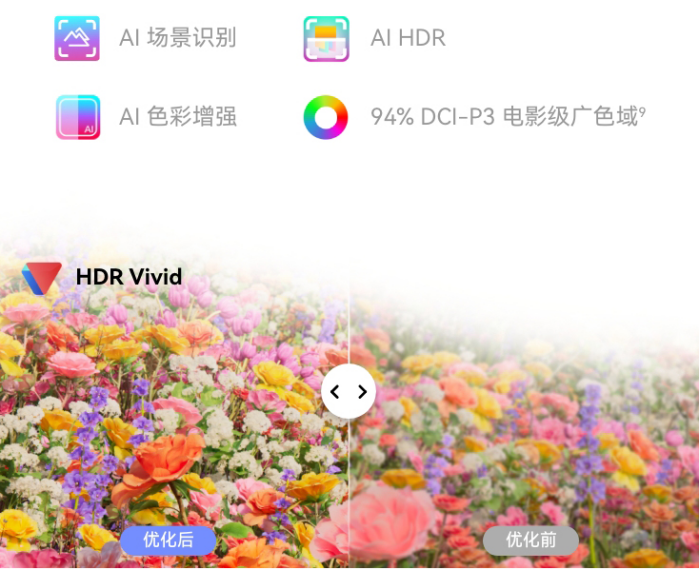 而在軟件層面,AI技術對畫質的提升功不可沒。鴻鵠畫質從色彩、對比度、清晰度、流暢度、護眼五個維度對智慧屏畫質進行了全面升級。在色彩方面,鴻鵠色彩技術讓畫面色彩更加鮮豔、生動,P3電影級廣色域再加上經過專業調教達到的ΔE≤1.5色準,使得影像鮮活真實,無論是大自然的美景還是人物的膚色,都能呈現出最自然、最逼真的效果。觀看《地球脈動》這樣的紀錄片時,廣袤草原上的翠綠青草、湛藍天空中的潔白雲朵,鮮活的彷彿觸手可及。