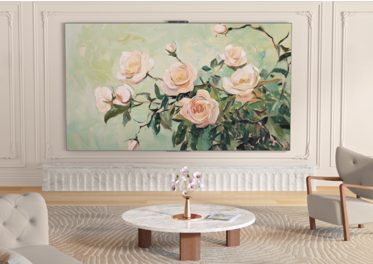 想象一下,將華為Vision智慧屏 5掛在客廳的牆上,如果播放一些世界名畫的壁紙,那分明就是一幅掛在牆上的壁畫。超薄的機身和超窄邊框設計,以及高達99%的屏佔比,為用户帶來了更為沉浸的觀看體驗。無論是白天還是夜晚,它都是客廳內的焦點。