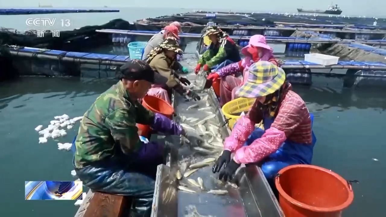 海上也是一派繁忙景象。經過一年多的養殖,福建連江投放到海里的2000萬條大黃魚苗已長到100克到200克,為了讓它們更好地生長,漁民們這兩天開始在養殖漁排上忙着給魚苗“分家”。